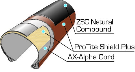 Looking for a tire that's more aggressive than the mixte-tread GravelKing? The GravelKing Sk might just be the tire you need for the more hardcore roads. Aggressive knobs, ZSG Natural rubber compound, puncture protection breaker and AX-α special low rolling resistance casing make the Gravelking a go-anywhere tire. And tubeless compatible up to 60 PSI!